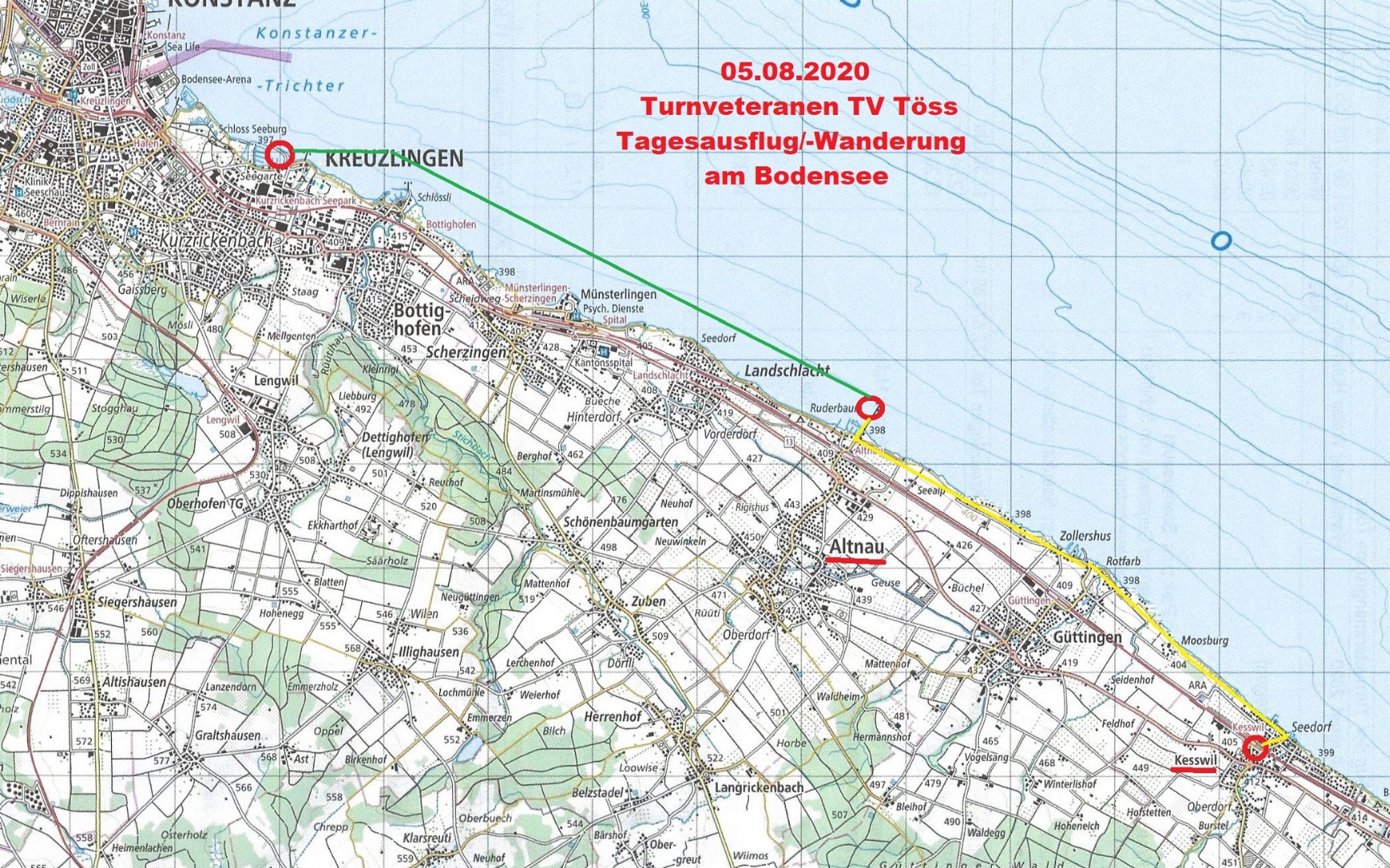 Tagesausflug an den Bodensee Wetterlage: Ganzer Tag sonnig, angenehme Temperatur- und angenehme Wanderverhältnisse